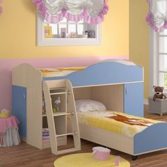 Кровать-чердак "Дюймовочка-5.1" рассчитана на двоих детей, так как объединяет два полноценных спальных места. Выдвижная нижняя кровать может устанавливаться отдельно от комплекса. Под верхней кроватью имеется стеллаж с открытыми полками и два отделения с дверцами. Такой уголок экономит пространство в детской комнате. Кровать подойдет детям от 1 года до 18 лет.