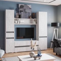 Вы можете подвесить одну тумбу под ТВ рядом с другой, чтобы получилась одна длинная тумба под телевизор в стиле лофт, длиной 180 см.